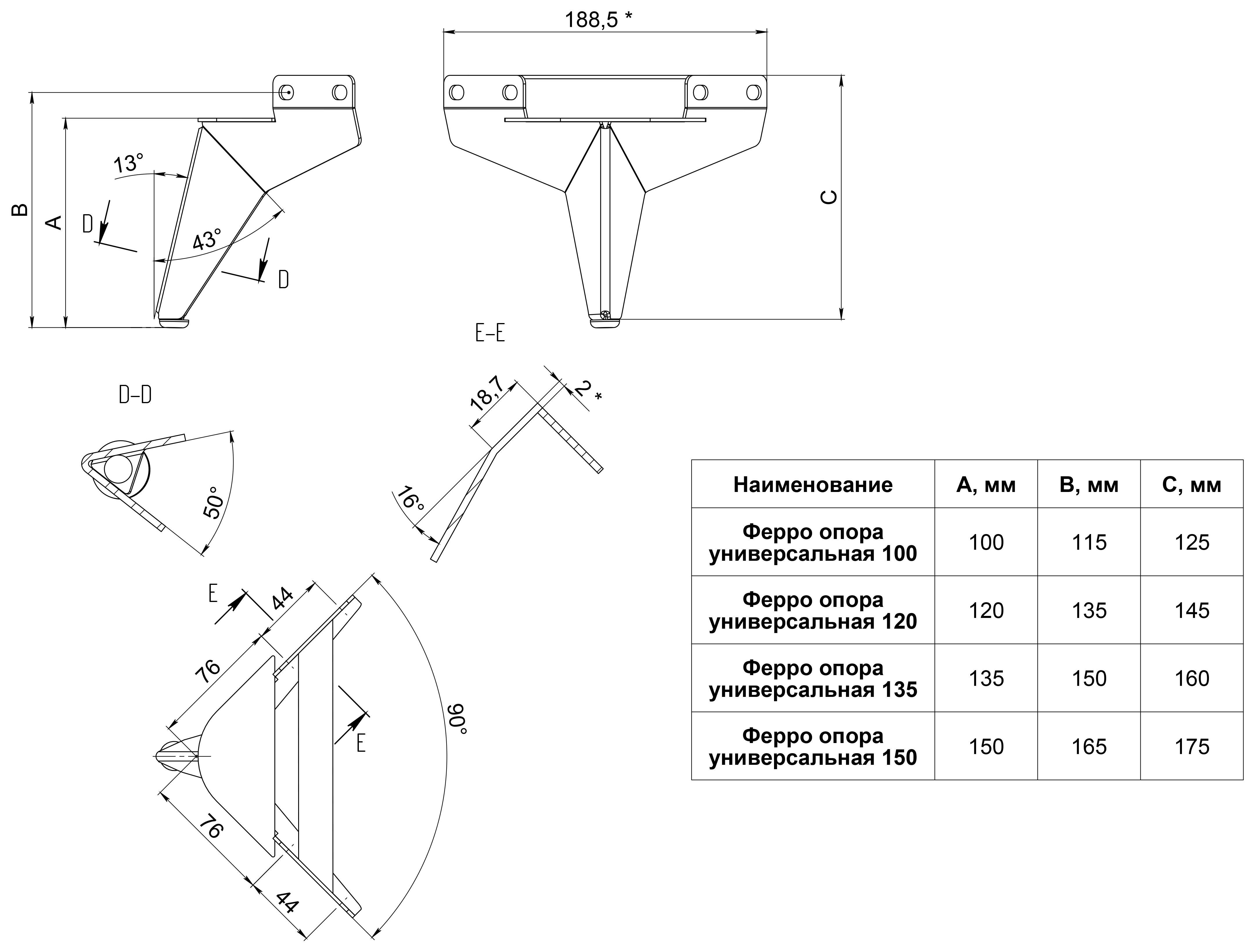 Ферро Опора универсальная 150 (чер. муар)